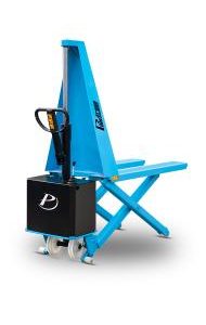La horquilla se eleva mediante el mando eléctrico. El control de la tracción eléctrica de la transpaleta, tanto hacia adelante como hacia atrás, se realiza mediante el acelerador. Estas dos operaciones se activan en el timón de comando de la transpaleta. Como resultado, ni levantar ni trasladar el equipo requiere el esfuerzo del operador. Opera en pasillos de hasta 2.05 metros de ancho.